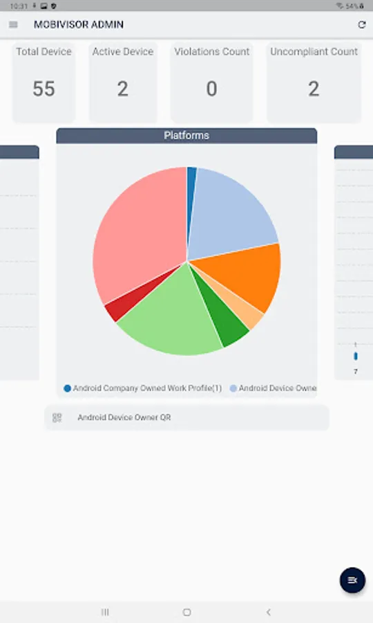 MobiAdmin is the mobile management console for the MobiVisor. Administrators can hastily react via MobiAdmin incase of necessity. It includes a subset of functionalities of MobiVisor web console including: