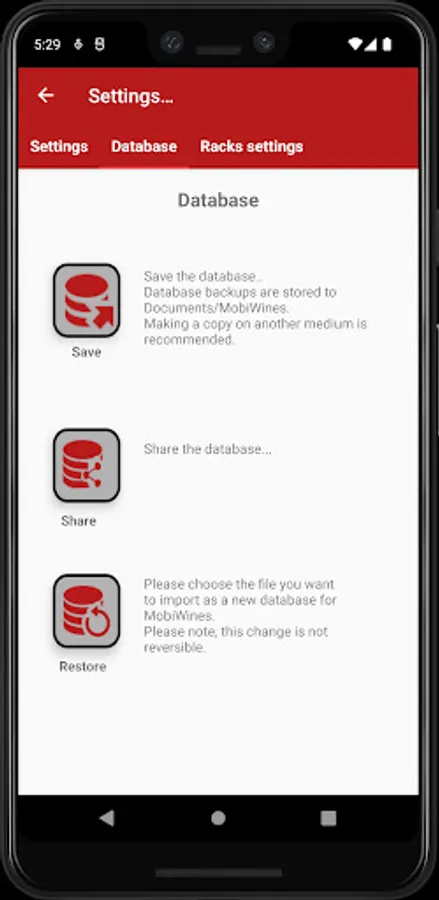 MobiWines allows you to find your bottles according to any criteria, and the place where to find them, thanks to the realistic representation in the cellar but without excessive frills.