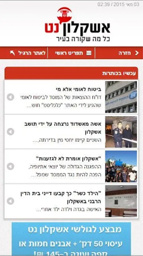 הצטרפו למאות הגולשים מידי יום, קבלו עדכונים ישירים על כל מה שקורה באשקלון, בחירום, בשגרה, כל החדשות כל העדכונים באתר ועכשיו גם באפליקציה המתעדכנים 24 שעות ביממה.