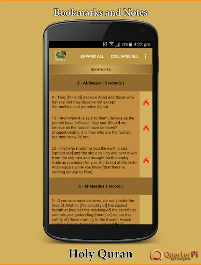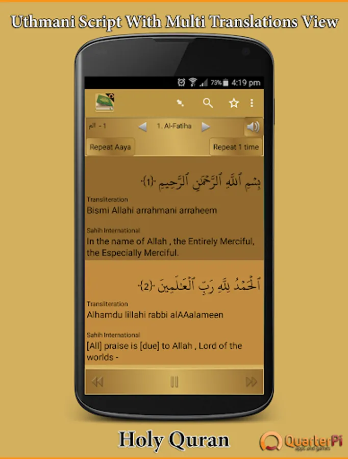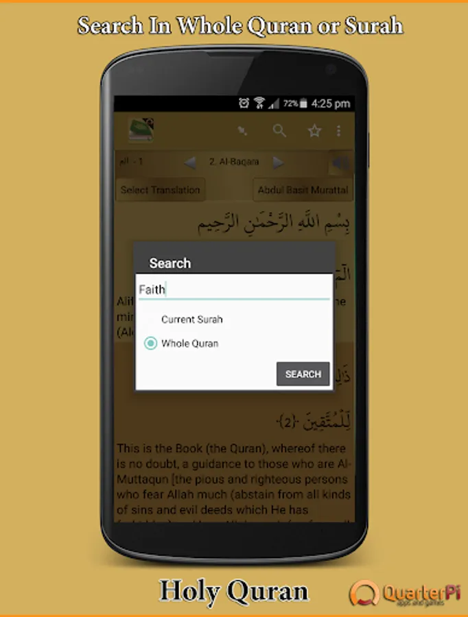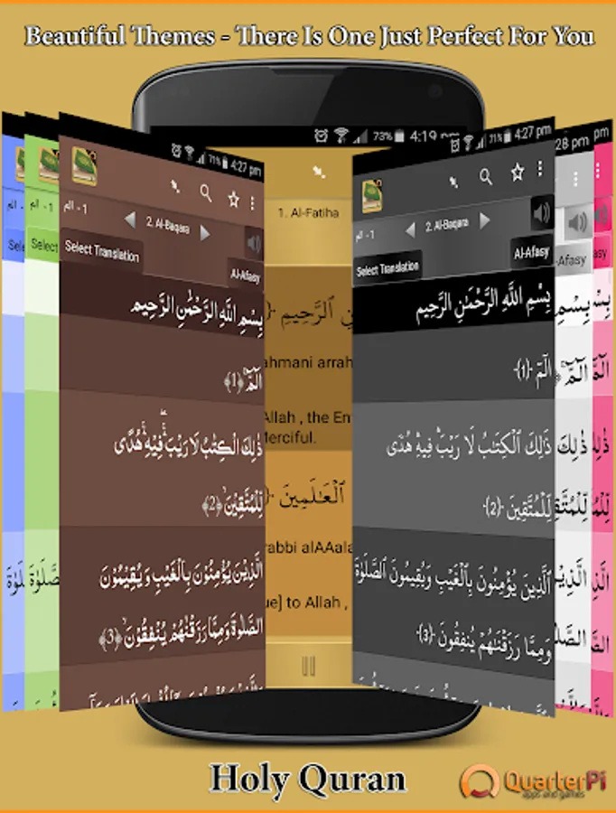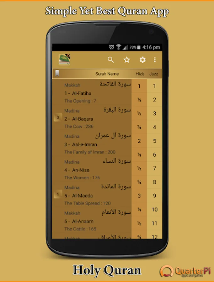 Read the most beautiful book Holy Quran (القرآن الكريم) anywhere any time on your android phone or tablet. This beautifully designed and easy to use Quran app helps you read and memorize Al-Quran with offline mp3 audio recitation of complete Qur'an.