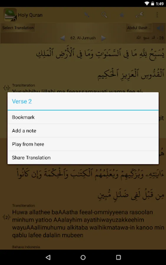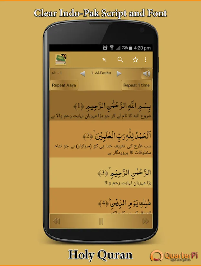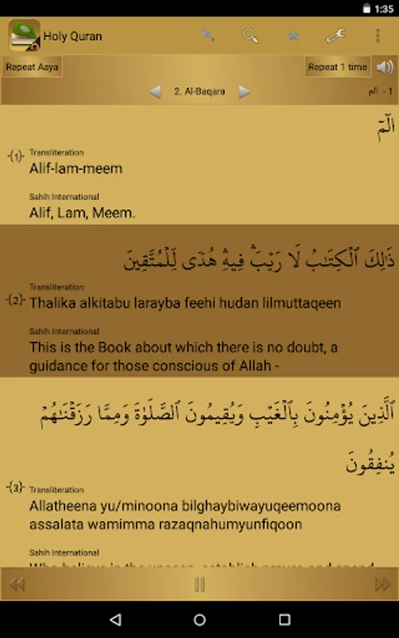 ★ Repeat a Verse or Surah 1 to 5 and infinite time to easily memorize that Verse or Surah.