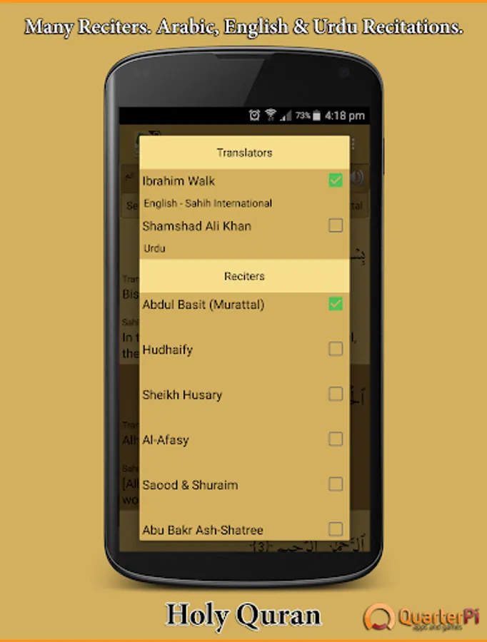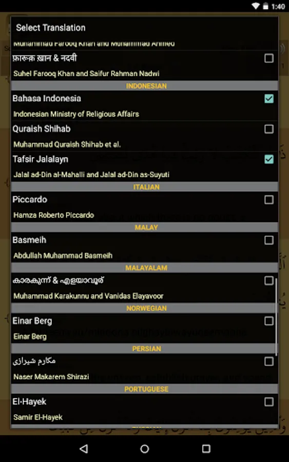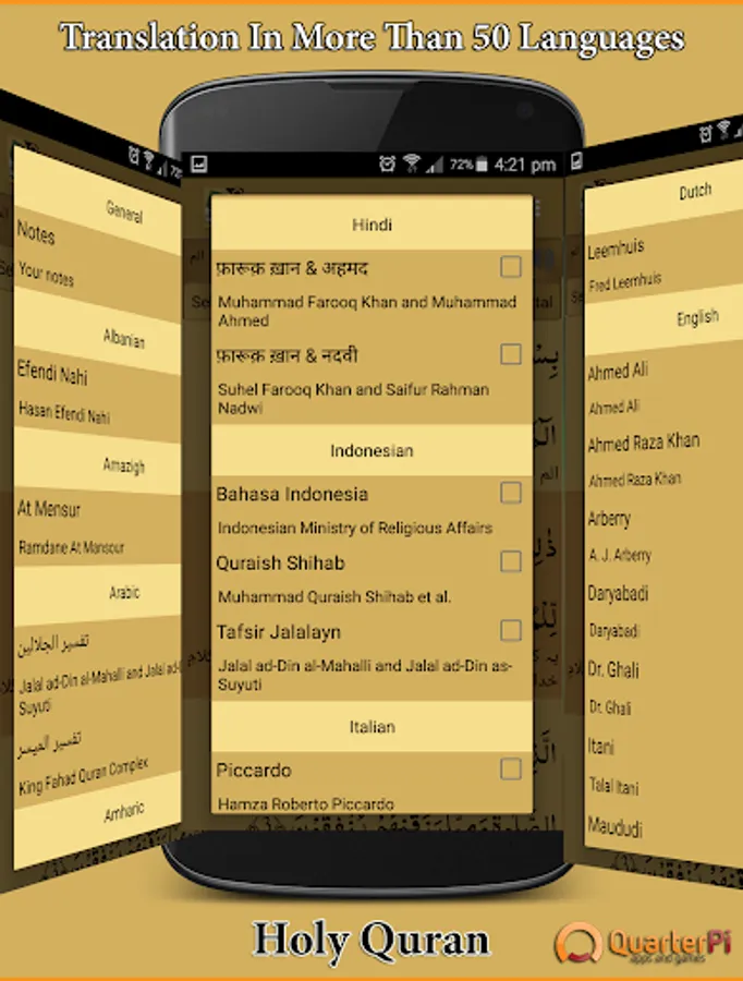 ★ Choose from many different translations of Quran. (See Supported Translations section below)