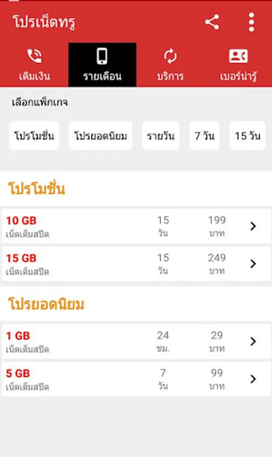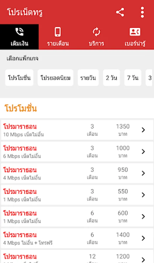 1. Extra True Internet promotion: will include a promotion that focuses on using only the Internet. Divided by the speed of the Internet True, full speed, playable according to the specified amount And unlimited play without speed reduction, which will have speeds of 10Mbps | 6Mbps | 4Mbps | 1Mbps | 512Kbps and 384Kbps