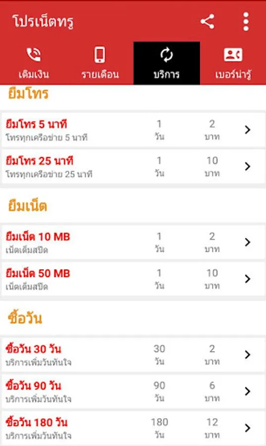 2. Extra Call: For people who focus on calling Will be divided by call Focus on calling to all networks By choosing to apply according to the calling minutes Or unlimited, there will be subscription only to call in the Truemove H network, choosing how many days to use. Or apply for a sweetheart number Unlimited calls to only the people you know