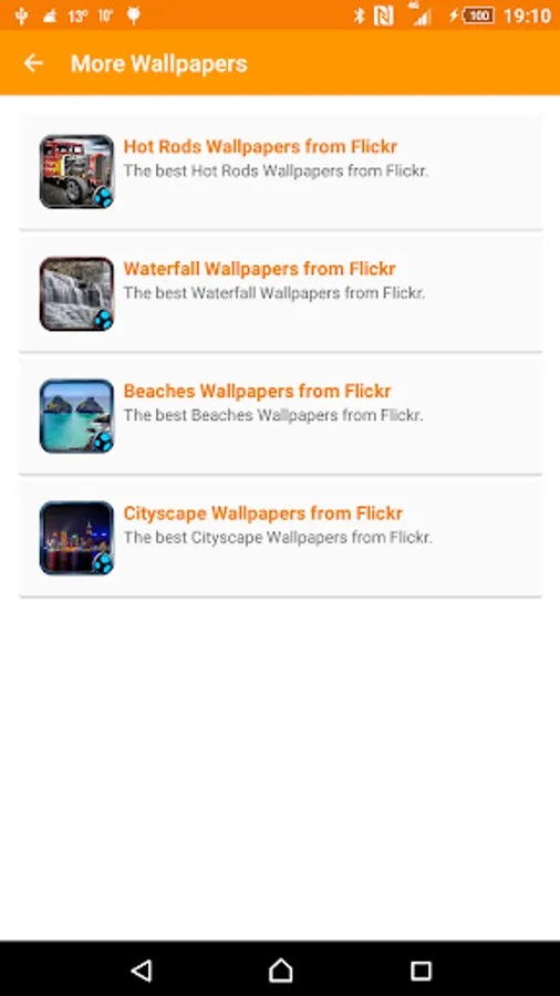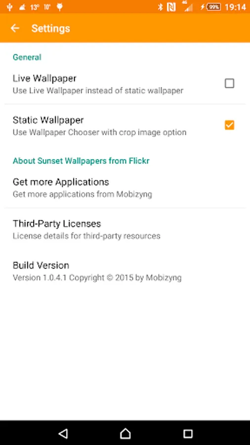 Sunset Wallpapers from Flickr use Internet to get photos and Ads.