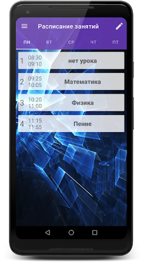 - Class Schedule. In this section you can enter a class schedule, and it will always be at hand.
