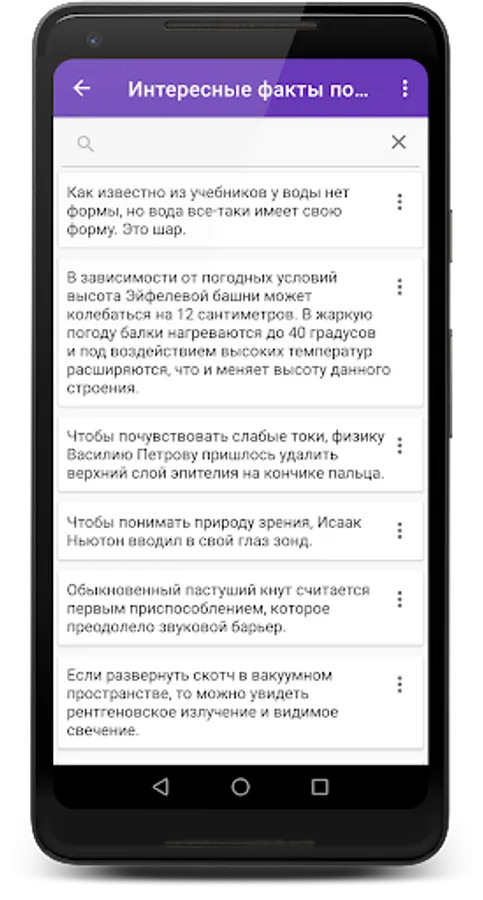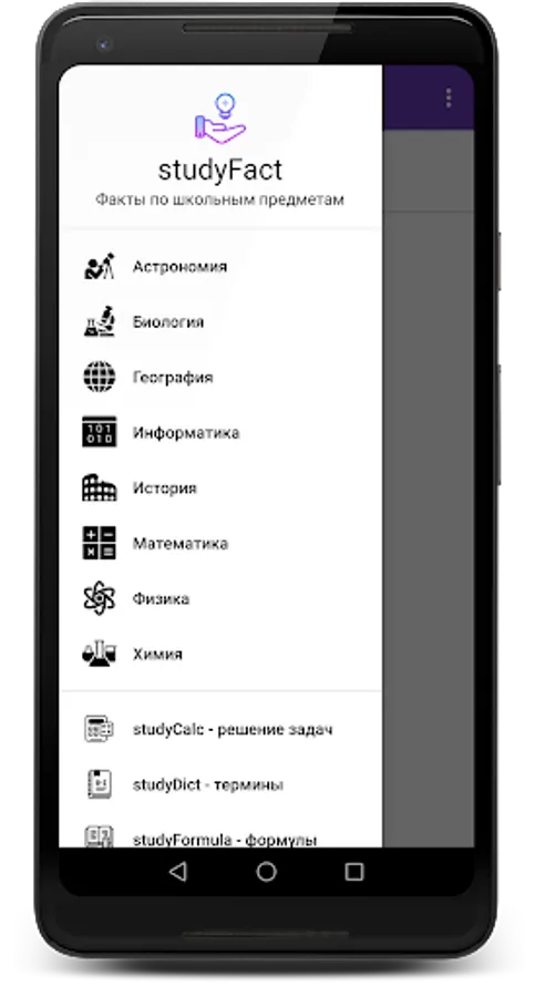 studyFact - a collection of interesting facts about mathematics, physics, biology and other school subjects. With the help of the application, you will not only learn a lot of interesting things, but you will also be able to easily share facts with your classmates.