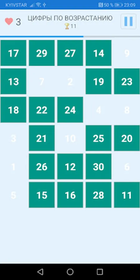 - Numerals in ascending order - Schulte's digital table. You must select all the numbers in ascending order.
