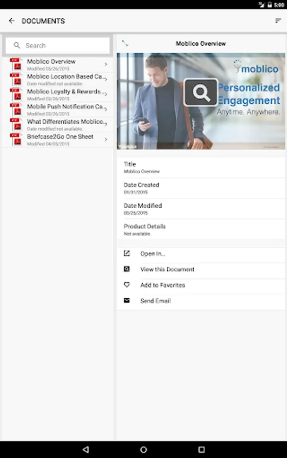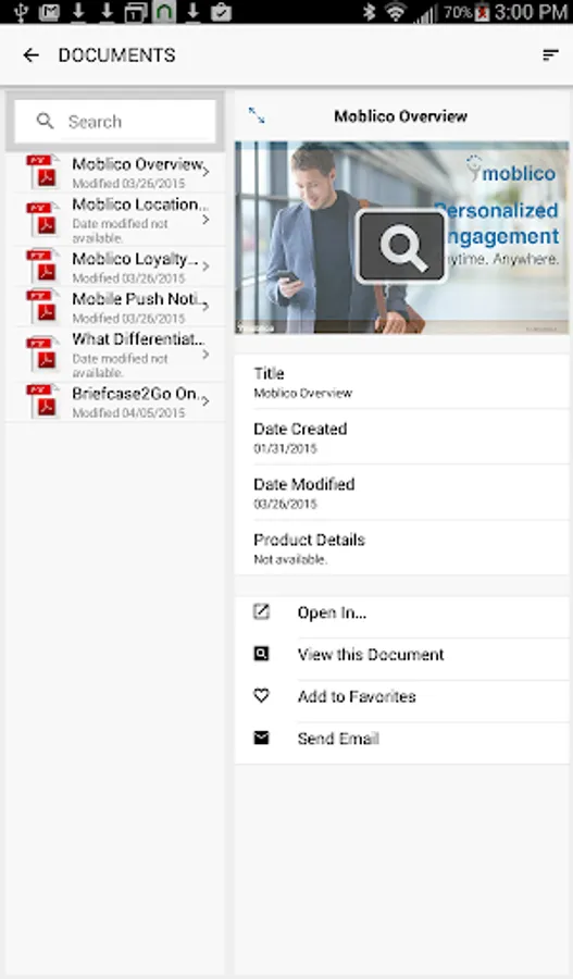 Moblico’s Briefcase2Go is an intuitive tile-based app designed to centralize and mobilize key business functions within a business discipline, product area or functional group. The Briefcase2Go is designed to improve employee, customer, and member efficiency at a reduced incremental operational cost.