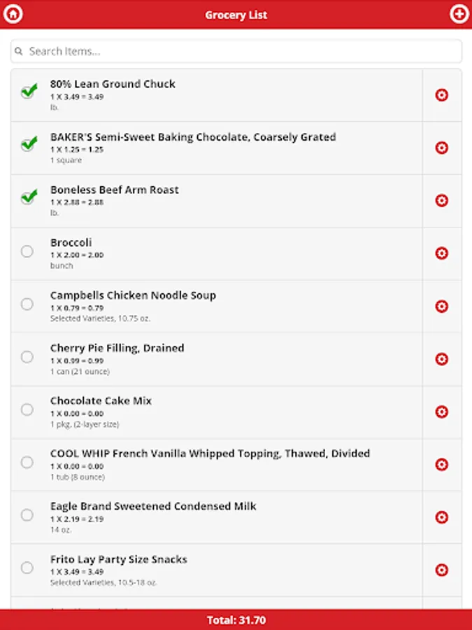 Grocery shopping list for use when you shop.