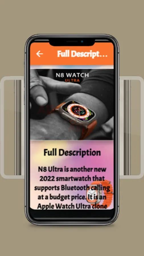 N8 ultra smart watch guide N8 Ultra is another new 2022 smartwatch that supports Bluetooth calling at a budget price. It is an Apple Watch Ultra clone that got a square design with a 2.02-inch large IPS screen and is equipped with several features including a heart rate monitor, SPO2 blood oxygen monitor, Thermometer, Multisport modes, Bluetooth Call, and supports Wireless charging. So let’s dive into the full details!.