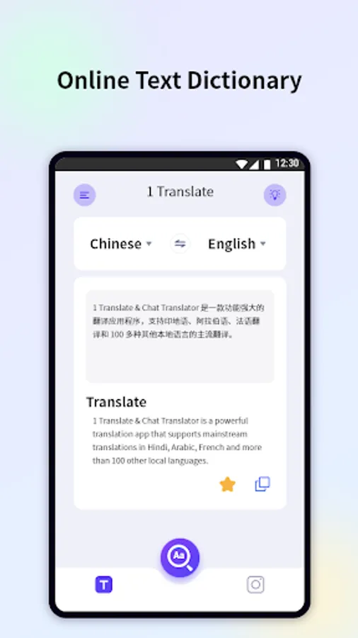1 Translate & Chat Translator is a powerful translation app that supports Hindi, Arabic and French translations as well as mainstream translations in over 100 other local languages.