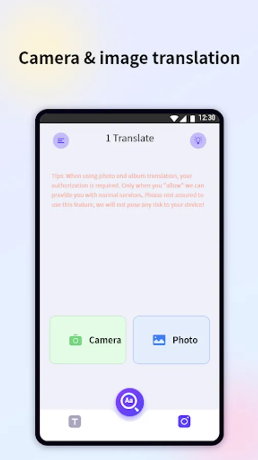 1) Image and camera permission (android.permission.CAMERA): We support camera translation, so we need your permission to use this feature.