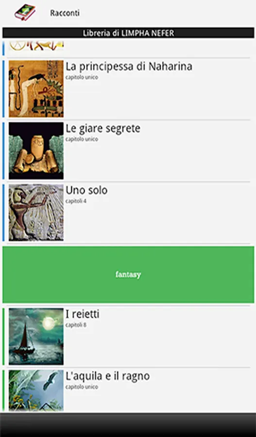 Author of stories and short stories: Limpha Nefer, Community Brevi Racconti, Italo Persegani.