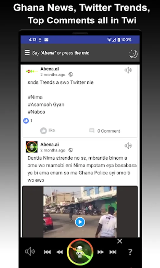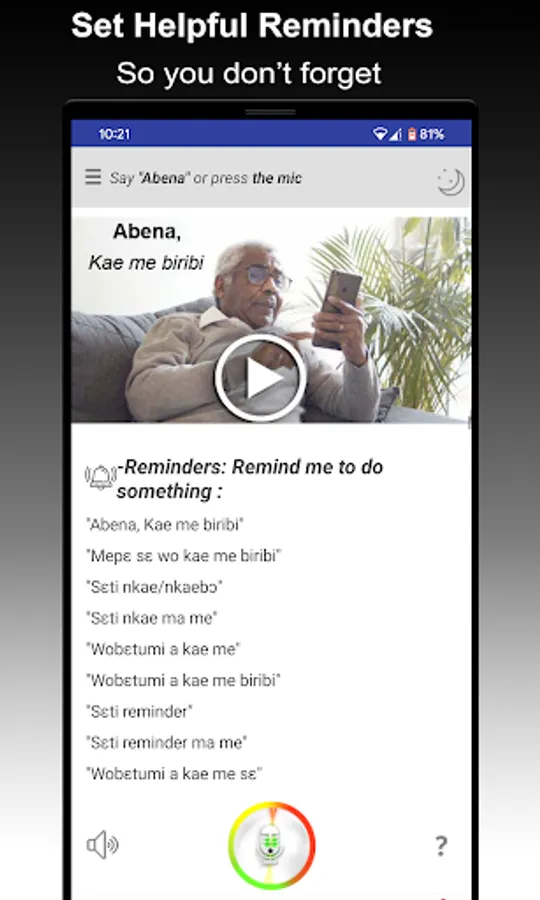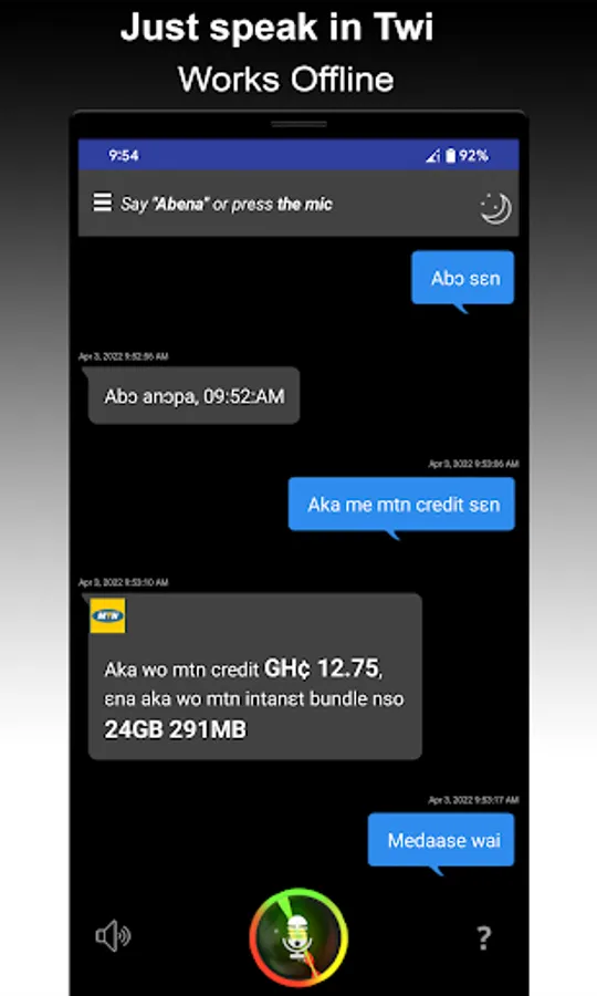 There are many other features. Install & tap help to see full list. Voice assistant Ghana
