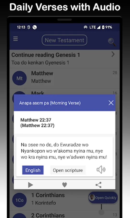 π Full offline use for both scriptures and audio in Fanti & English. You donβt need the internet to use it