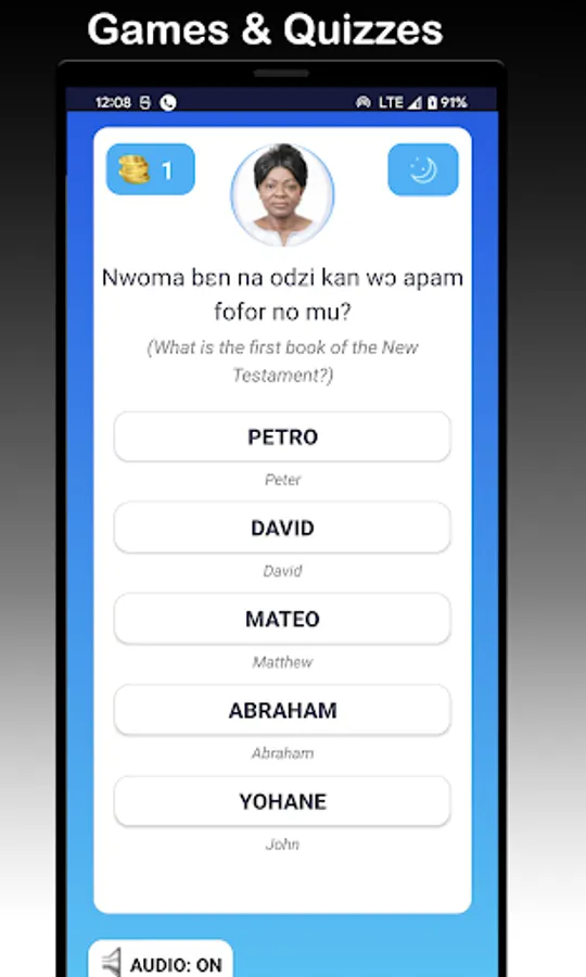 π Mfantse and English Bible comes with fante bible quizzes & fante bible games with leaderboard