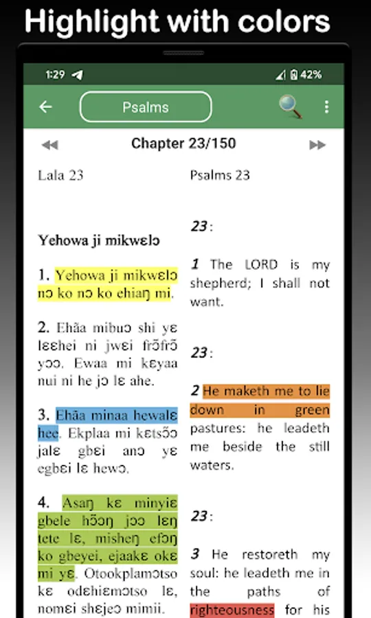 👉 Highlight Ga scriptures, bookmark verses & save sections of scriptures & verses in any color