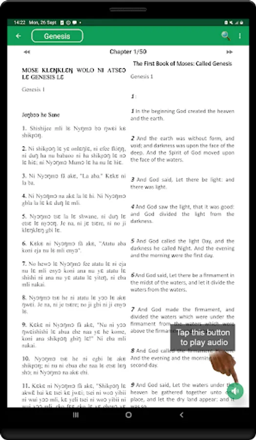 First ever Ga Bible in Ga & English. Full offline use, audio support etc