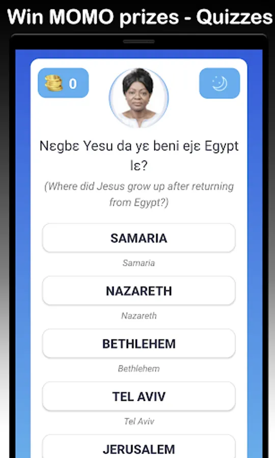 👉 Win weekly prizes by playing bible quizzes in Ga and even English side by side with full twi audio. Ga bible quiz is very fun. We award MOMO (mobile money), call credit, data etc to winners every week