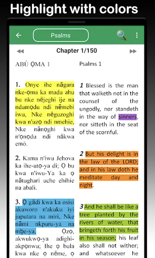 👉 Highlight Igbo scriptures, bookmark verses & save sections of scriptures & verses in any color in this top super Igbo Bible Nso (IGBOB)