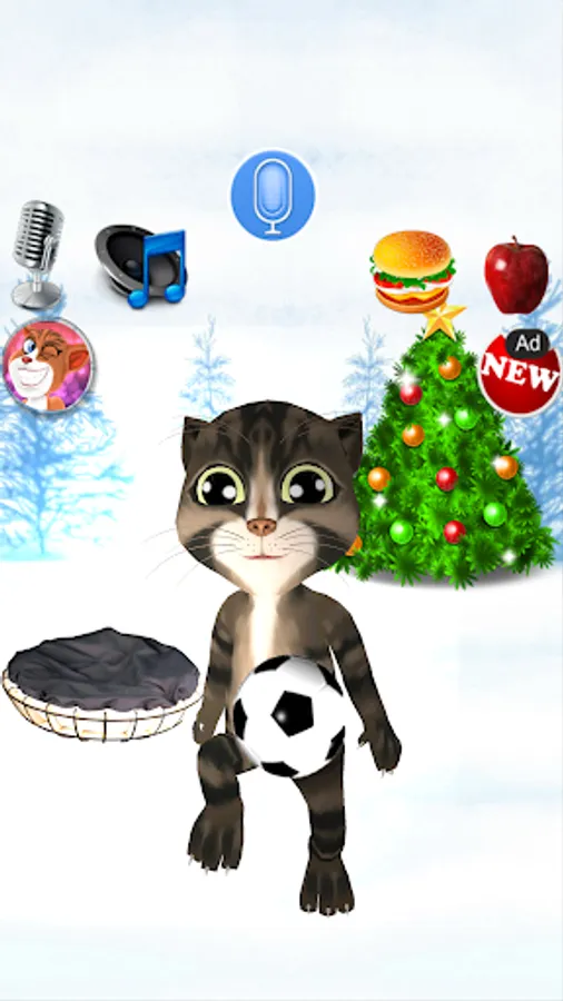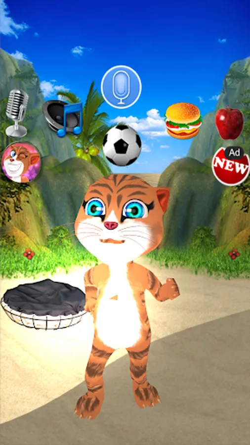 - Tap the mic to hear Real Talking Cat sing. In his funny voice, he’ll sing many songs