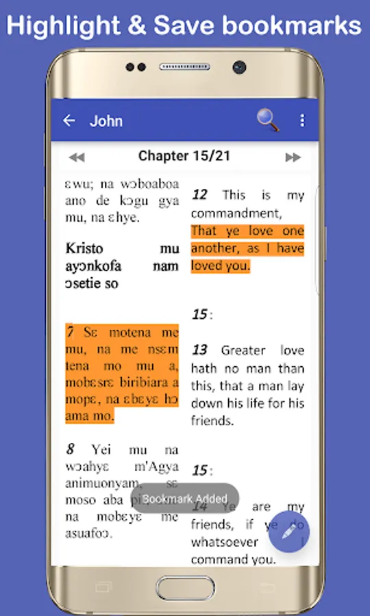 π Highlight Twi scriptures, bookmark verses & save sections of scriptures & verses in any color