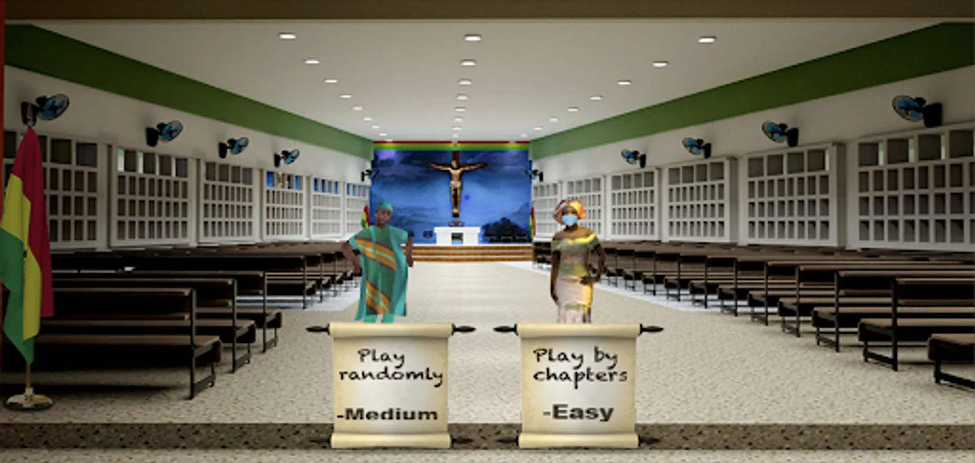 The Twi version of 3D church simulator contains complete Asante Twi, Akuapem Twi accompanied with full audio for both Old and New Testaments.