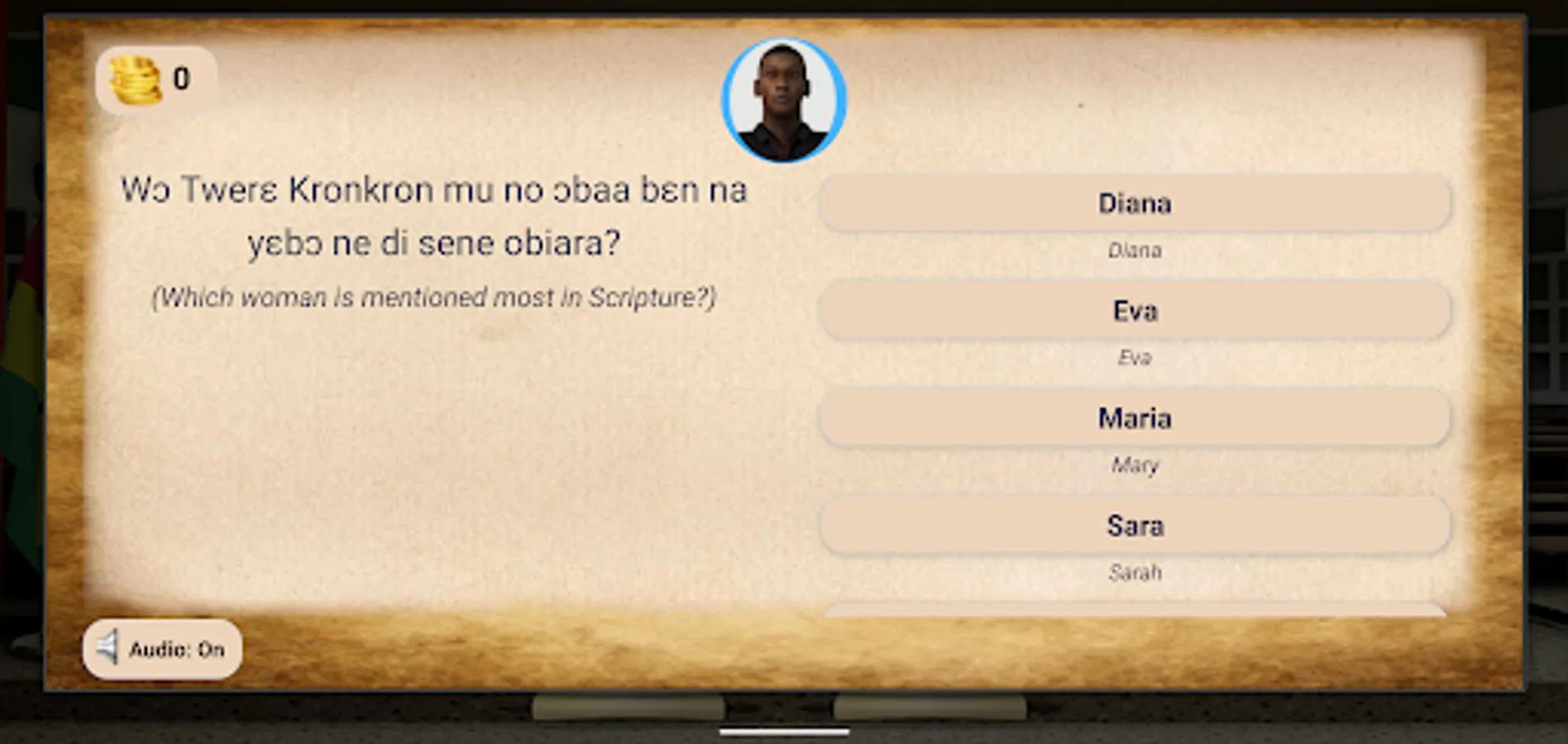 Best bible includes interactive 3D bible quizzes, 3D bible games with full audio in Twi and English languages