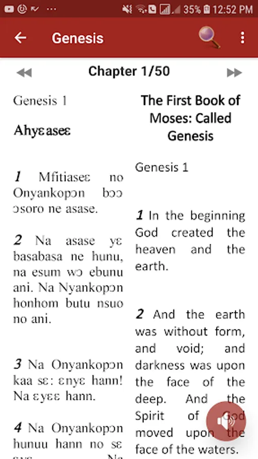 You can read side by side (parallel / two views) mode or read in single mode ( one view) with Nkwa Asem - Full Twi Bible 3D