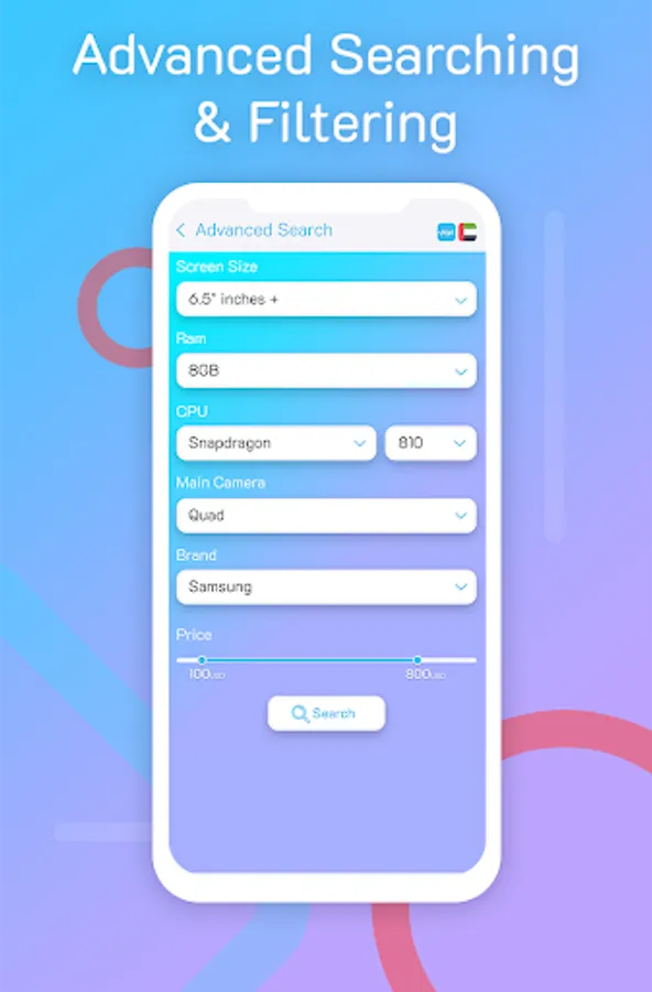 Mobolist offers you the option of finding the right phone for you by several filters or categories such as screen size, RAM, rear camera, processor, brand, or company as well as the price filter or you can choose several filters at one time through the advanced search option, which gives you wider options to select the appropriate phone or mobile that you are looking for.