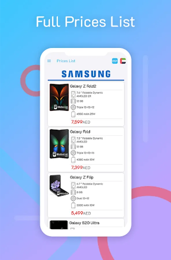 • All you have to do is, download Mobolist app and choose your country then you will find a full list of the latest phone prices and specifications that are available.