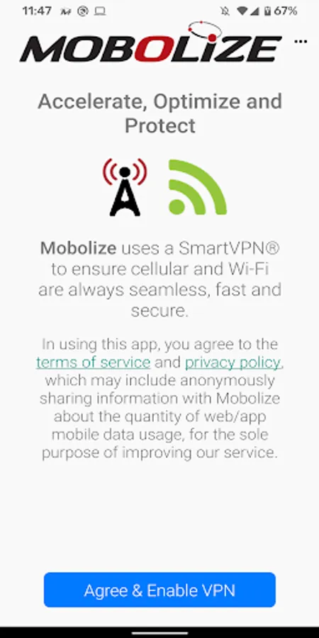 All-in one Mobile Data Protection app built on our SmartVPN™ technology that looks like a VPN but has the smarts that other VPN solutions lack to deliver you the fastest, most secure and efficient mobile data experience possible.