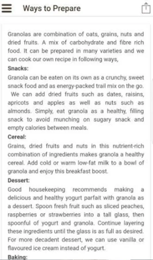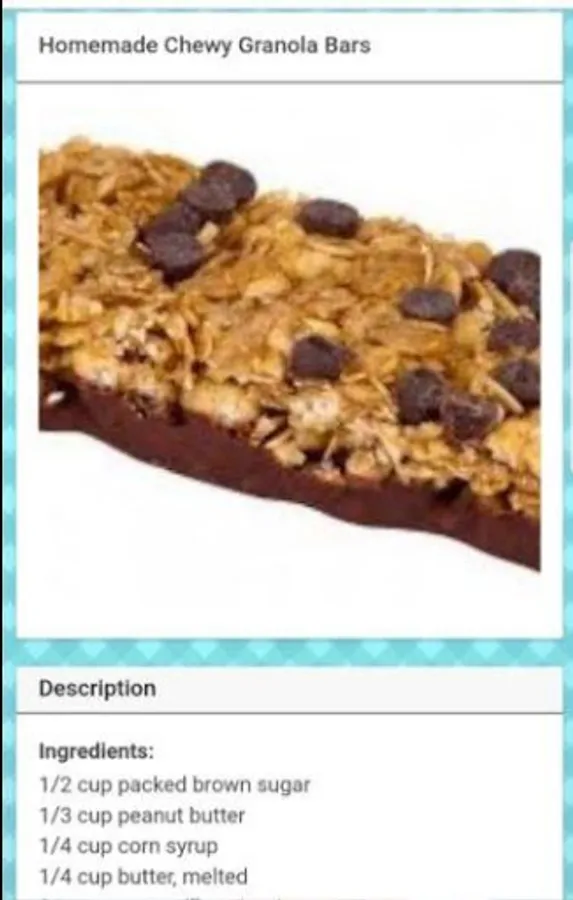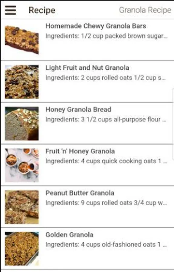 - Granola app has the list of all recipes provided under Recipe Menu. We can scroll from top to bottom to find our favourite recipe.