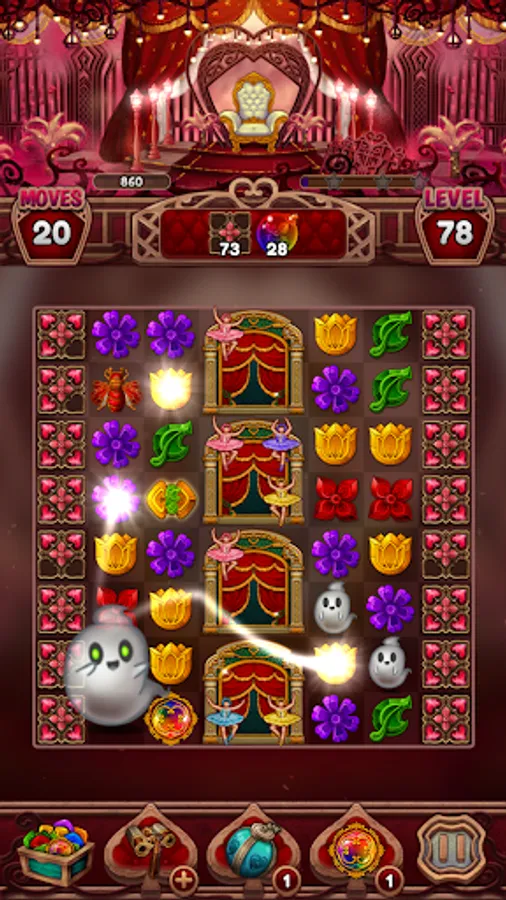 Make your way through by matching shiny jewels and gems, clear the path of Golden Roses, meet the cute Ghosts, break Cursed Masks, uncover Love Rune Pendants, channel the power of Magic Bees and more.