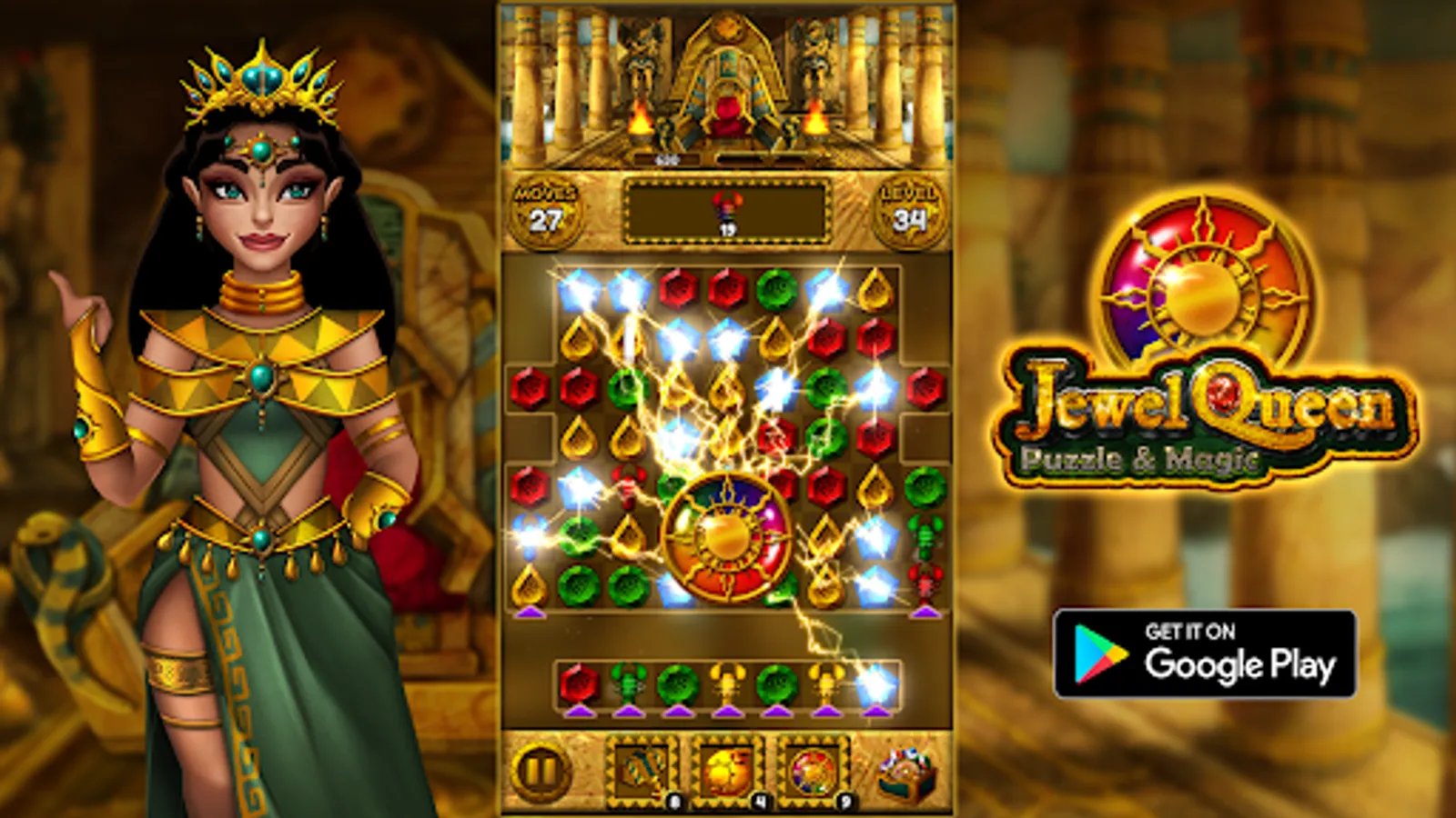 Have you ever dreamt of treasures, jewels and ancient kingdoms? In Jewel Queen: Puzzle & Magic you will dwelve into the halls of an ancient kingdom and help the Jewel Queen herself to restore its magic, uncover its secrets and recover all sorts of ancient artifacts! Assist her in uncovering her lost legacy, hidden within all sorts of puzzles, and ensure the safety of the kingdom by channeling the power of the Sun. Are you up for the challenge? Great rewards await you!