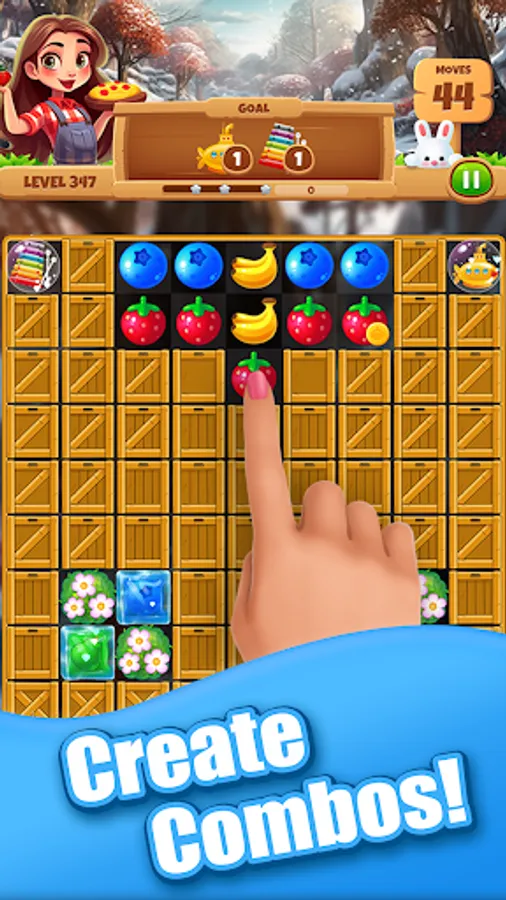 In "Fruit Quest: Match 3," you'll join a thrilling journey through magical forests, brimming with lush vegetation and hidden surprises.