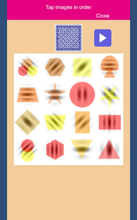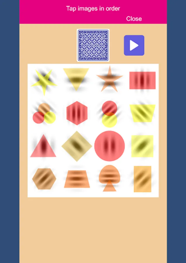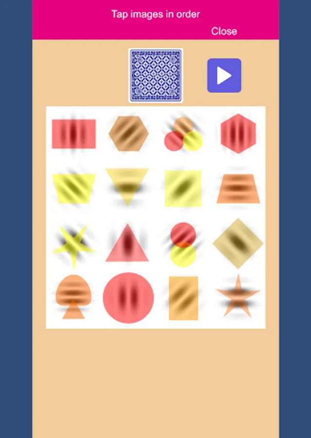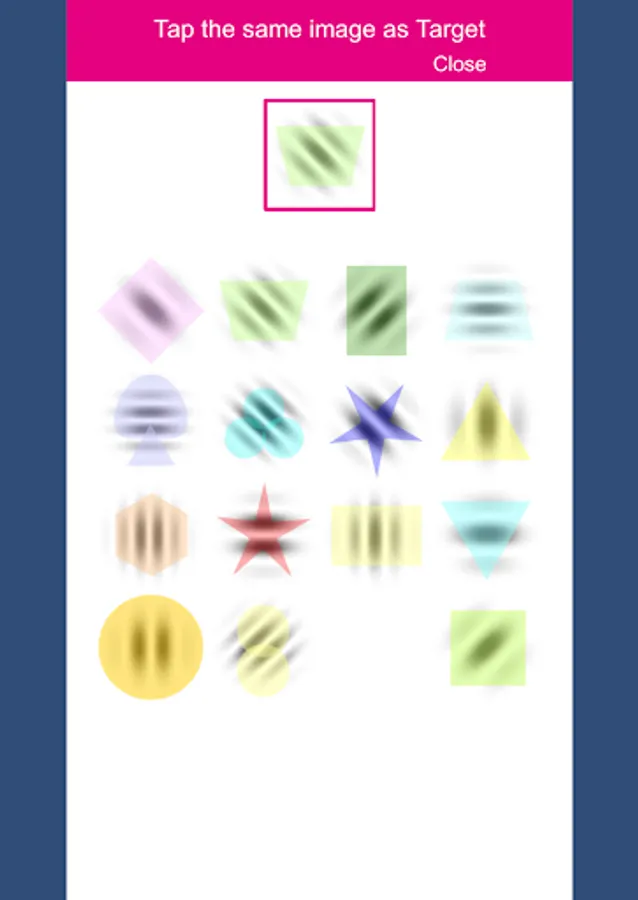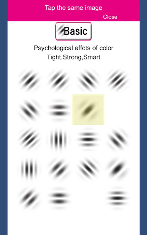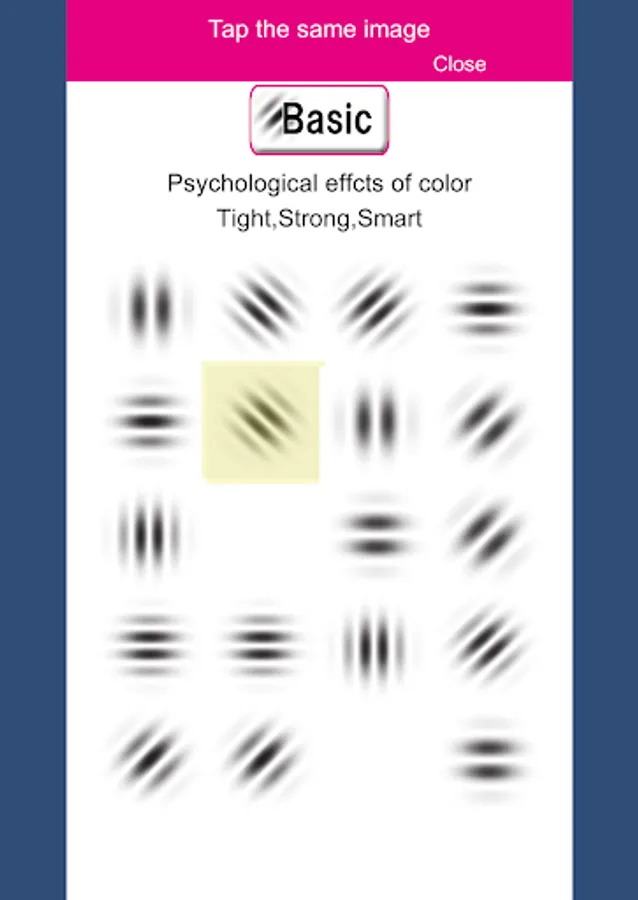 Tap on the Gabor Patch image with the same pattern to erase it, and a new screen will appear when all are erased.