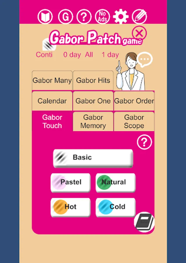 Increased the number of squares in the Gabor touch game.Tap on the Gabor Patch image with the same pattern to erase it, and a new screen will appear when all are erased.