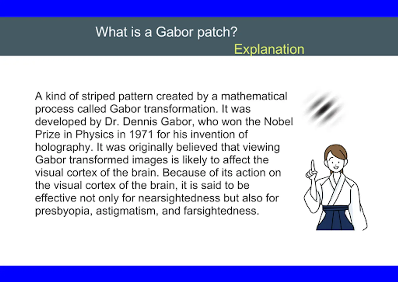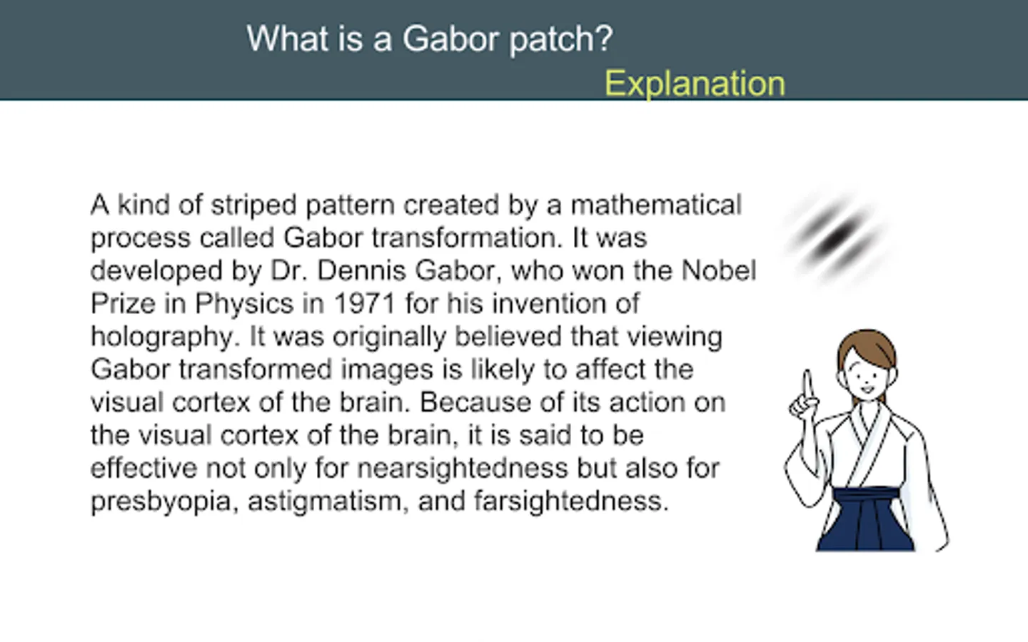 Because of its action on the visual cortex of the brain, it is said to be effective not only for nearsightedness but also for presbyopia, astigmatism, and farsightedness.