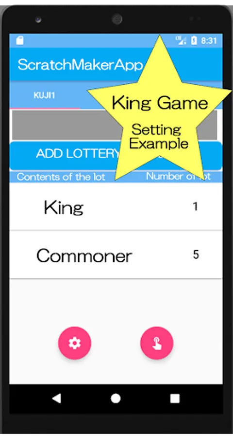 This application allows you to make your very own instant lottery that can be scratched with a finger, and enjoy it with your friends.
