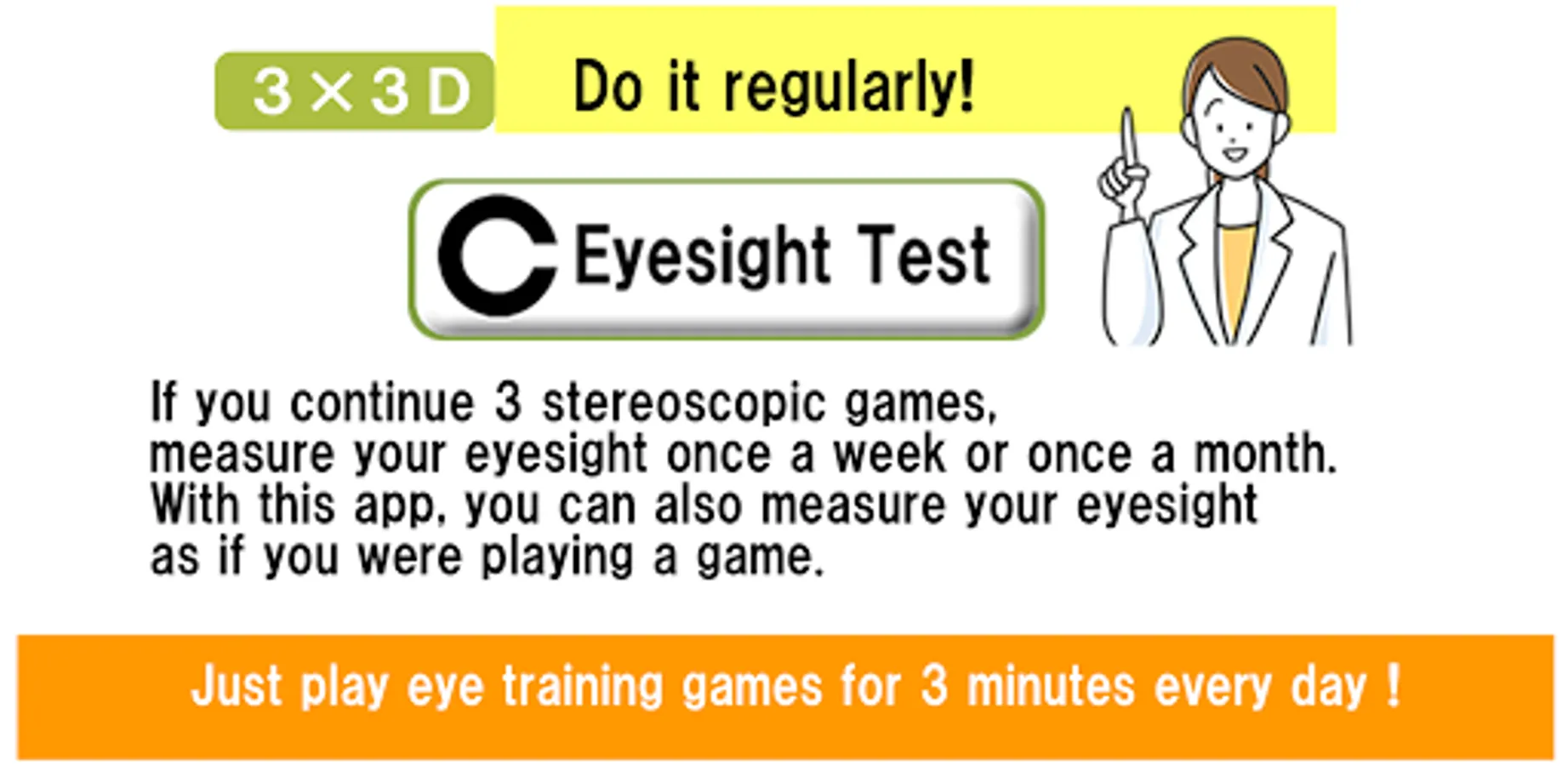 Sight recovery just by looking! Eye muscle training & brain training app that can be done in 3 minutes! This app is a vision recovery training that performs 3 types of 3D stereoscopic vision as if it were a game.
