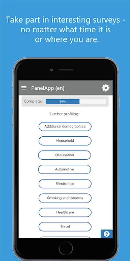 Companies and academic researchers want to hear your opinion so that they can develop new products and improve their existing products and services. Using our app, you can take part in interesting surveys and earn money with your participation. No matter what time it is or where you are.