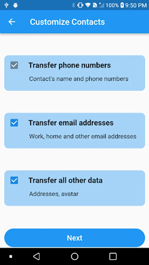 Contacts Transfer features: