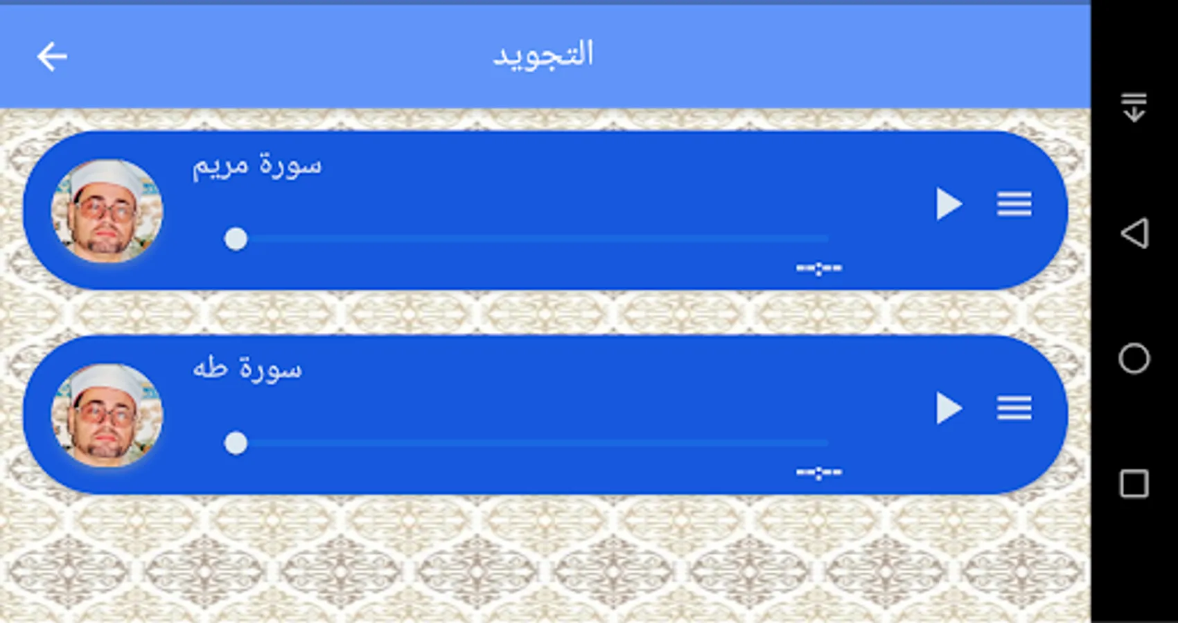 Therefore, the matter and its importance we offer you the application of Sheikh Shaaban Al-Sayyad Tajweed - the most beautiful of Maryam and Taha, the most beautiful communion and preaching, the beauty of the voice and the reverence in the recitation as if it were a voice from heaven, those sounds that we do not tire of hearing day and night, do not hesitate to press the download button, and enjoy and comfort your heart and the pleasure Your mind is to hear Sheikh Shaban Al-Sayyad Tajweed - the most beautiful thing that Maryam and Taha are present