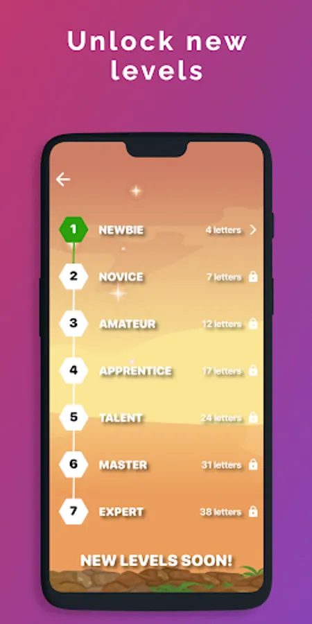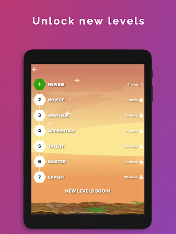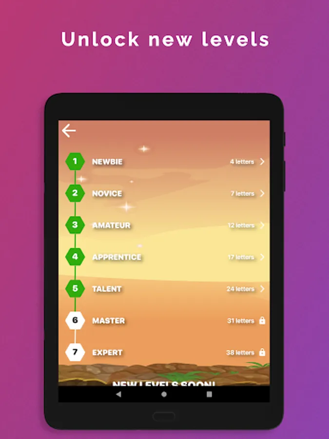 Our game is constantly being developed, new difficulty levels and words will continue to be added.