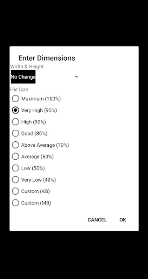 In this app you can modify the width and height of photos by pixels and also compress photos to any required file size.