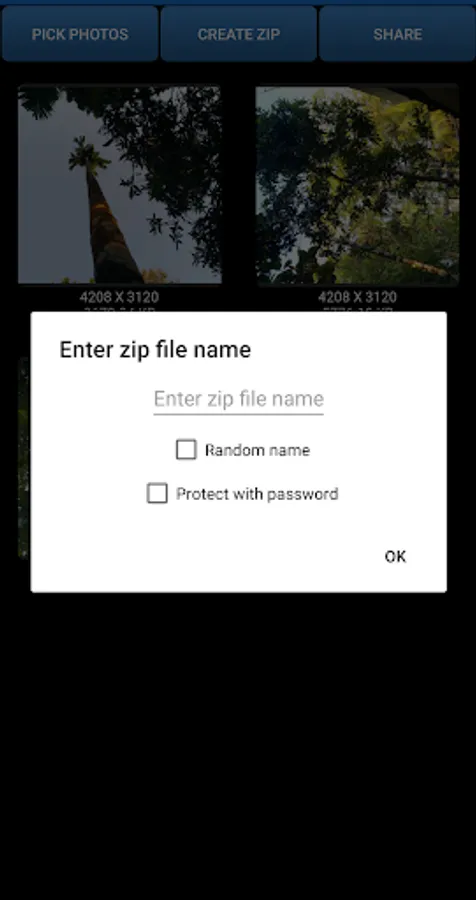 Create and share Zip file of reduced photos.