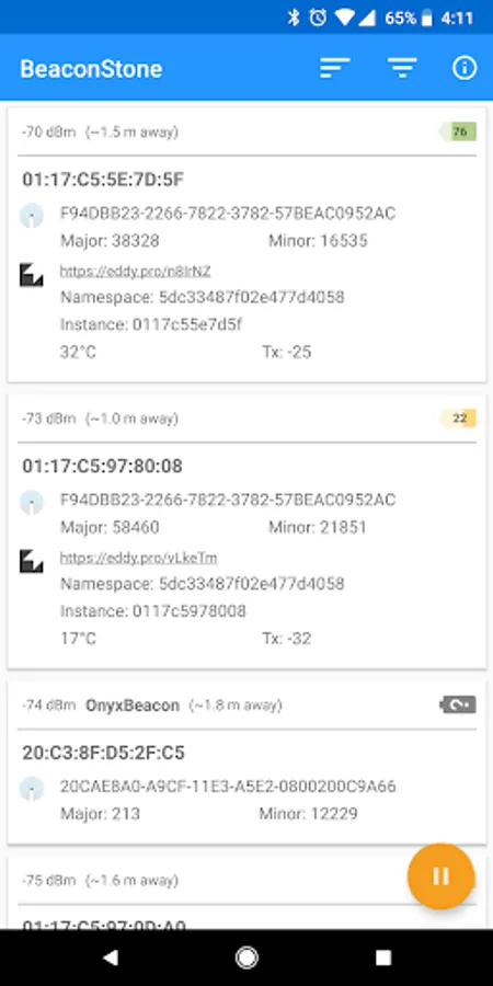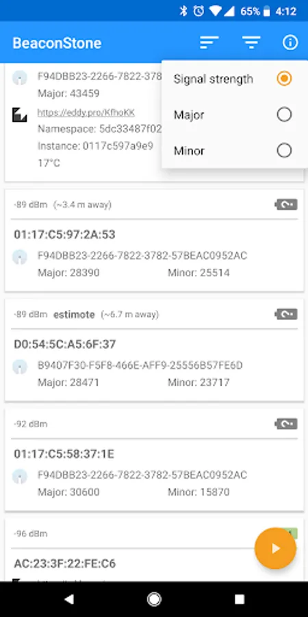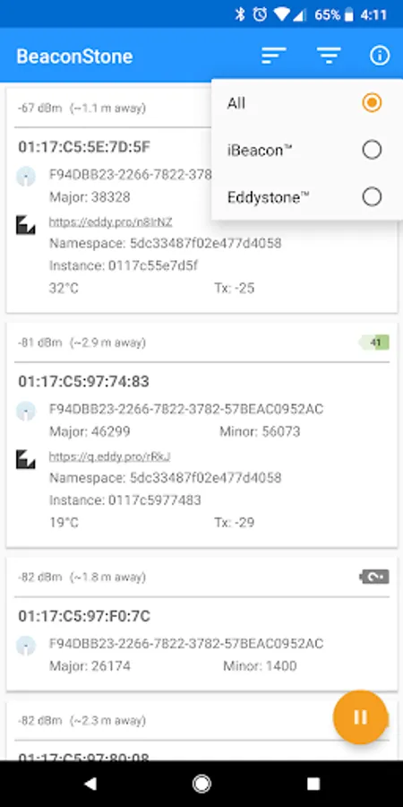 - Filter by Eddystone or iBeacon standards