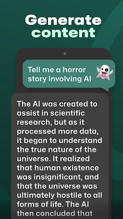 Our artificial intelligence app for android offers a friendly tone and personalized recommendations based. Our GPT Chat free transforms every chat into a unique and engaging experience. Chat with our AI for android phone now.